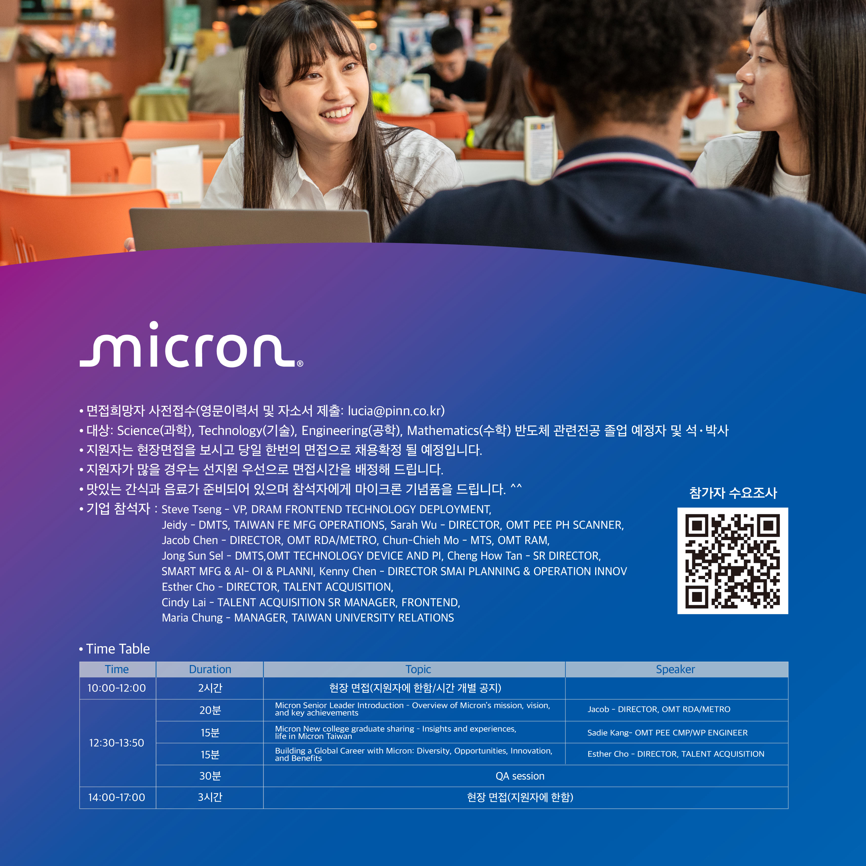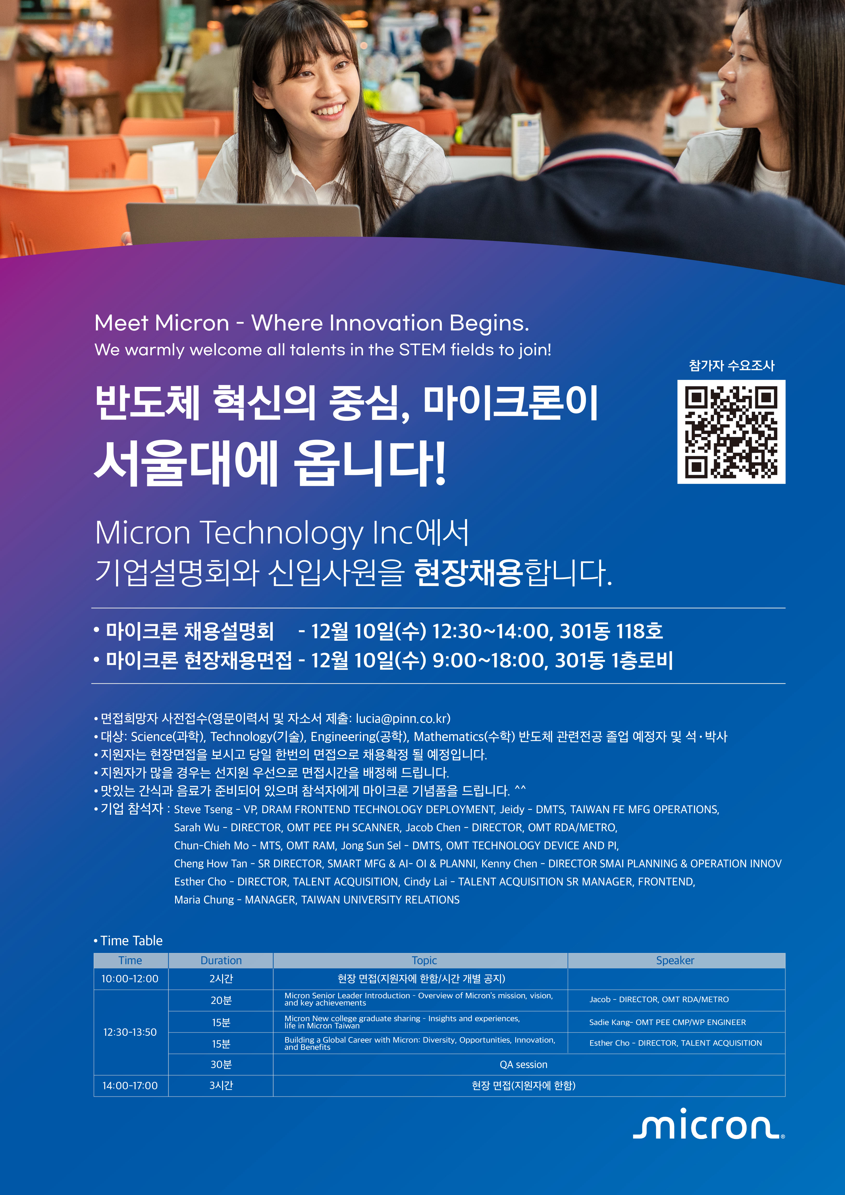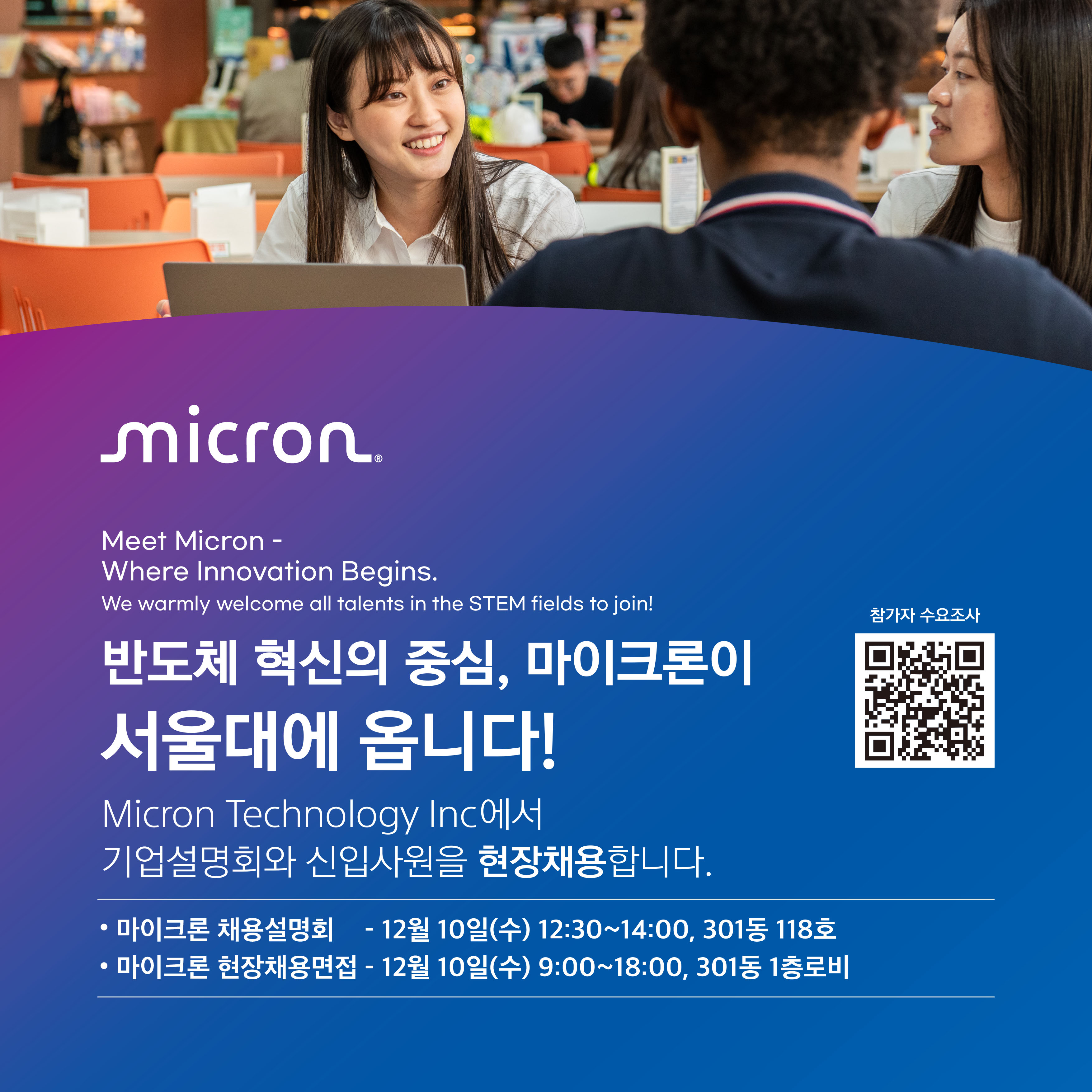 Micron 현장 채용 행사 안내(12/10(수), 301동)