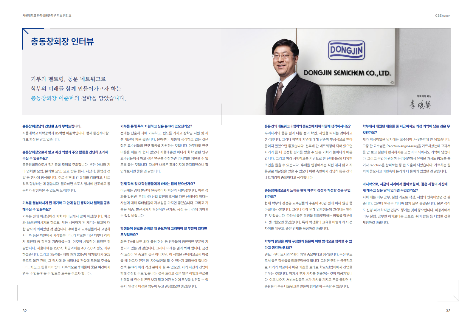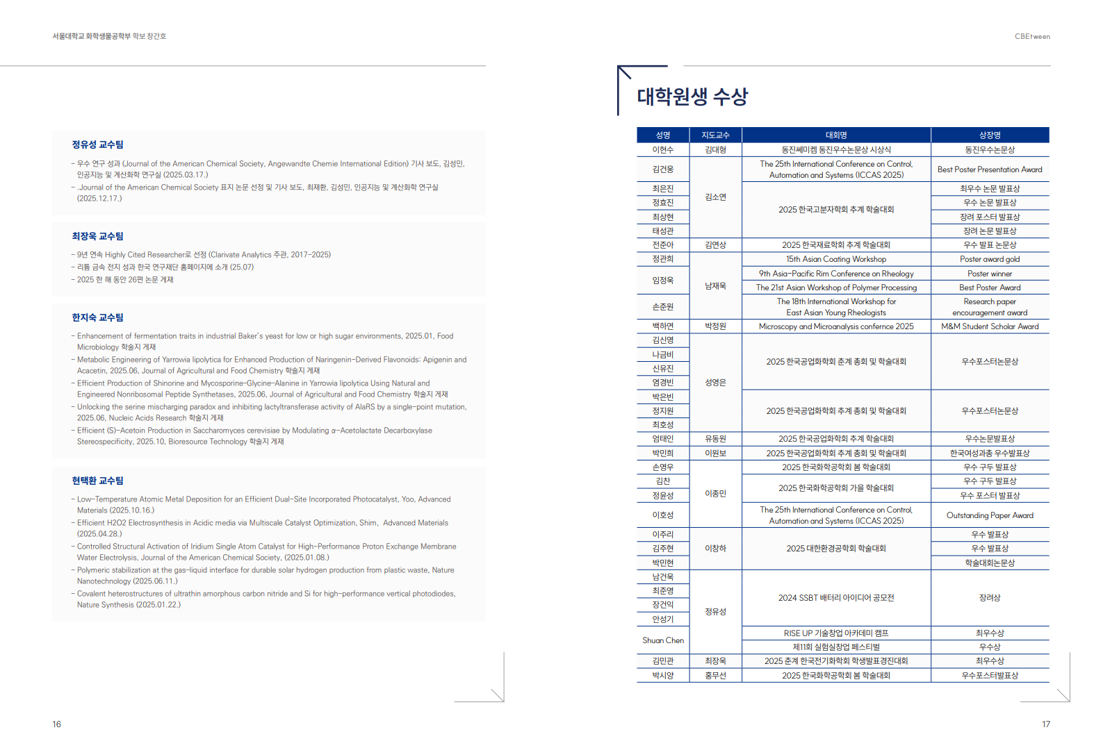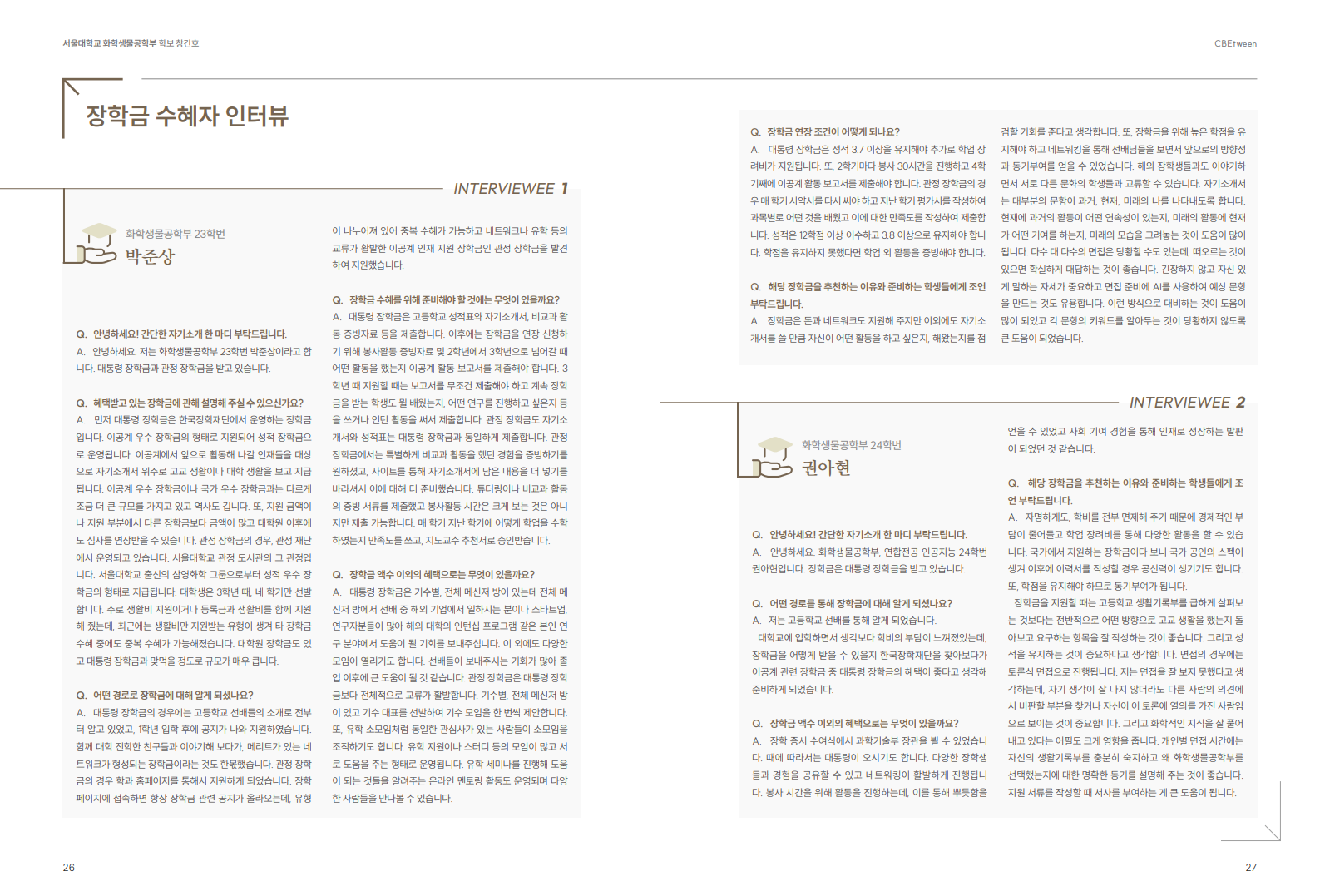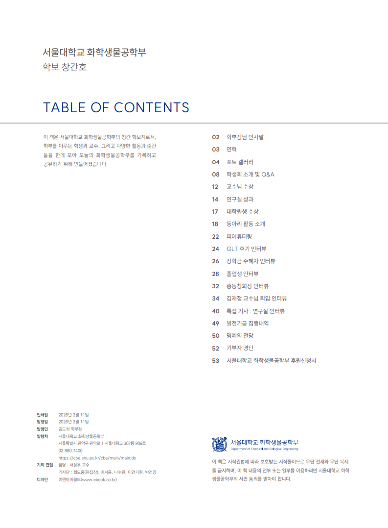 화학생물공학부 소식지 CBEtween 창간