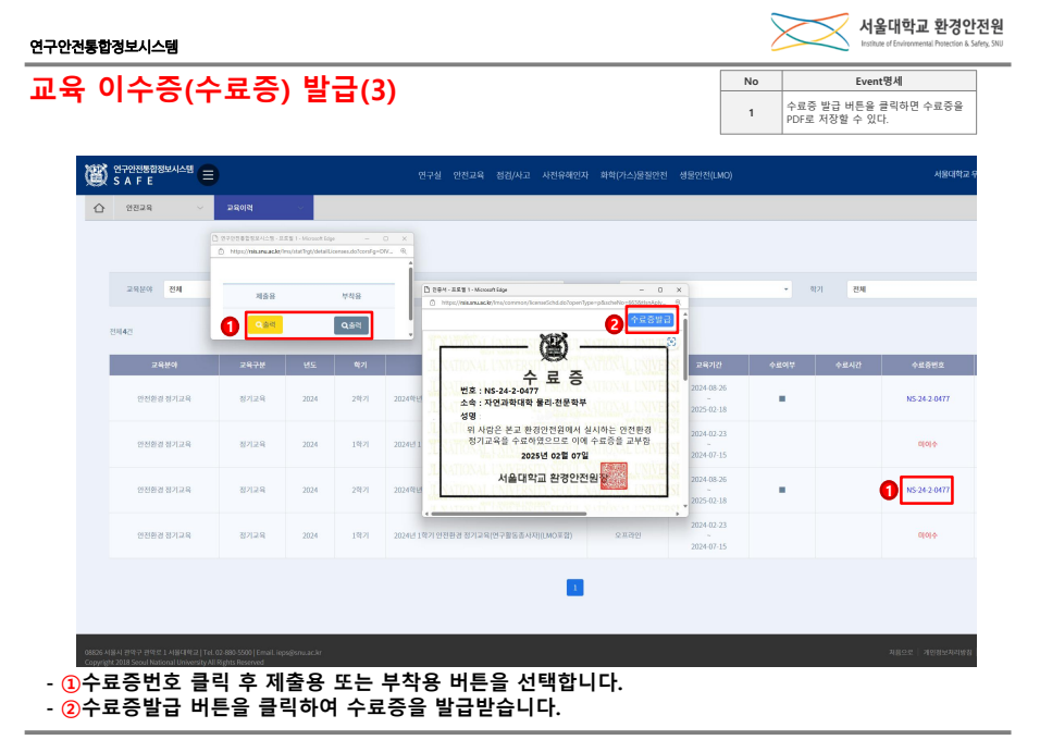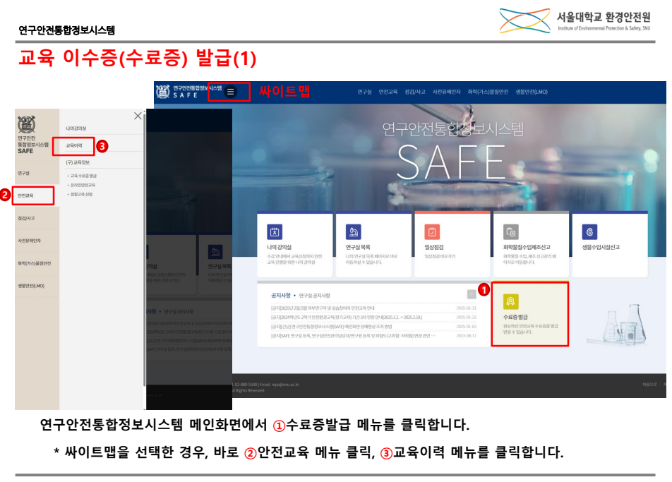 연구안전통합정보시스템(SAFE) : https://rsis.snu.ac.kr/