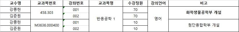 -우리학부 대학원 과목: 장바구니 1~2일차+선착순 1,2일차 화학생물공학부 소속학생, 선착순 3일차부터 전체학생