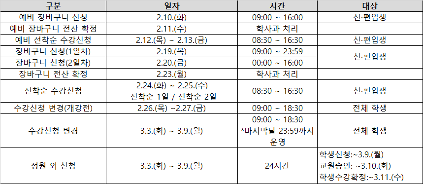 1. 신입생 수강신청 일정