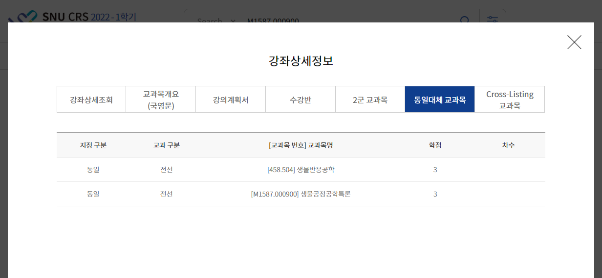 [코어 변경] 생물공정공학특론(구.생물반응공학) 중복이수 주의 안내