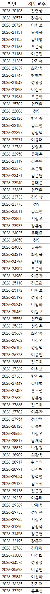 * 서류 제출 : 2026. 2. 26.(목) 17시 까지 / 화학생물공학부 행정실(302동 909호)